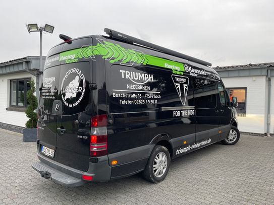 Teile des Fahrzeugs werden mit Digitaldrucken oder Carwrapping Folien foliert. Beschriftung wird mit verschiedenen Folienschriften ergänzt.